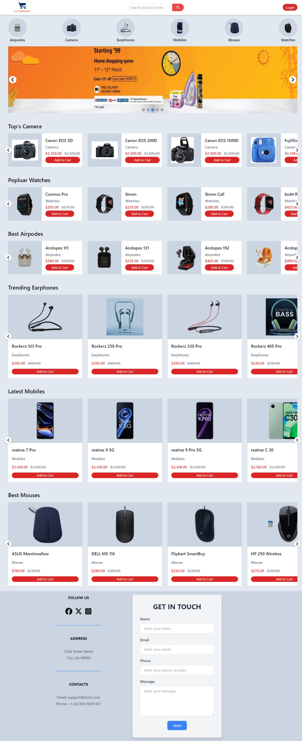 A comprehensive e-commerce platform featuring product listings, user authentication, shopping cart, and payment integration.