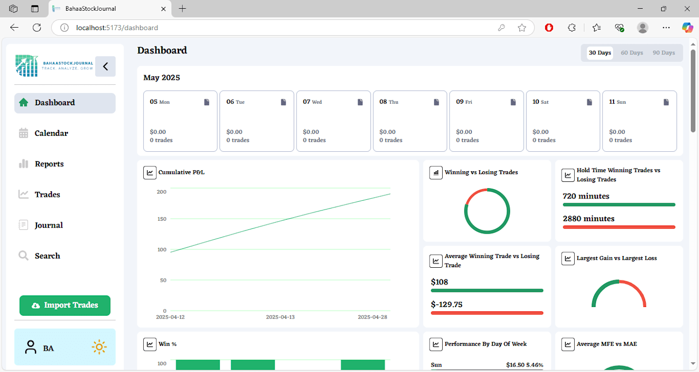 A full-stack trading journal application built to log trades, analyze performance, and provide insights for traders.